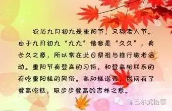 農曆九月九日是中國傳統的節日 重陽節 在易經陰陽觀念中把六定為陰數把九定為陽數九月九日二九相重故曰重陽 重陽節 的 由來. 農 曆 九 月 九 日 是 我 國 傳 統 的 重 陽 節. 重 陽 節 又 名 重 九 節 茱 萸 菊 花 節.